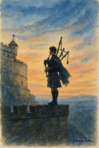 My memories of a lone piper rising against the night, his notes curling through tartan air as Edinburgh holds its breath and a legacy stirs awake. Your heart stays gripped in time for ever.