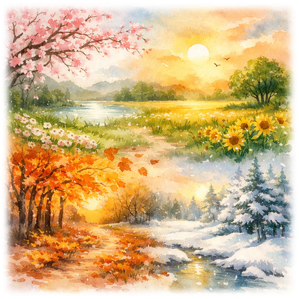 Haiku Poems about Nature follows the quiet rhythm of the year through four small windows of verse. From spring’s first awakening to winter’s silent stillness, each haiku captures a fleeting moment in nature, reminding us that beauty often lives in the simplest and most passing scenes.