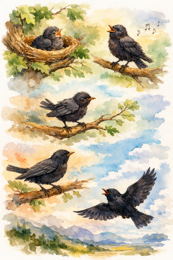 This poem trace the bird’s development from a vulnerable chick to a confident, free-flying creature, capturing the progression of growth, independence, and ultimate freedom. Each poem builds upon the previous one, showing the gradual transformation of the Black Bird.