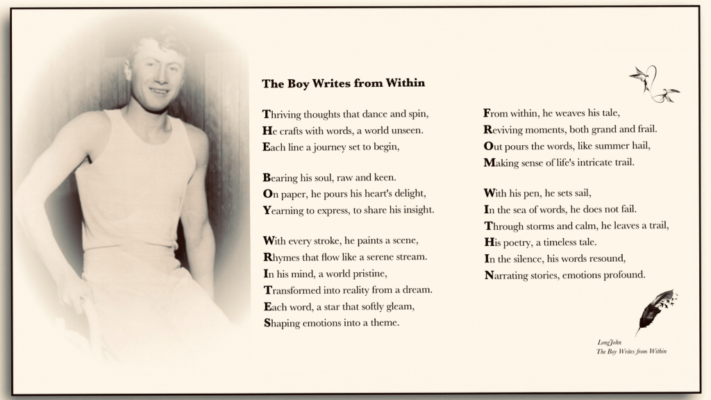 This image captures me at sixteen, a year into my time with the Junior Leaders. Even then, I found myself drawn to poetry—simple, pencil-scribbled verses shaped by the moments of each day. Those early reflections, raw and unrefined, became the foundation of the voice I continue to grow today.