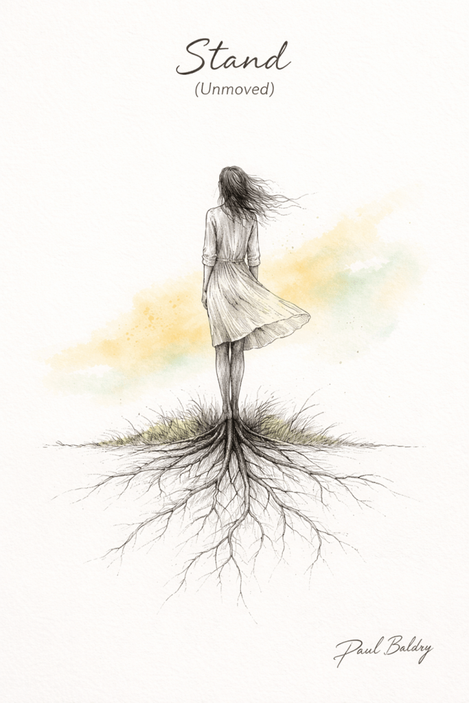 A quiet reflection on inner resolve—this piece speaks to the strength of standing firm in your truth, even when everything around you shifts. It’s not loud defiance, but a calm, rooted certainty that refuses to bend.